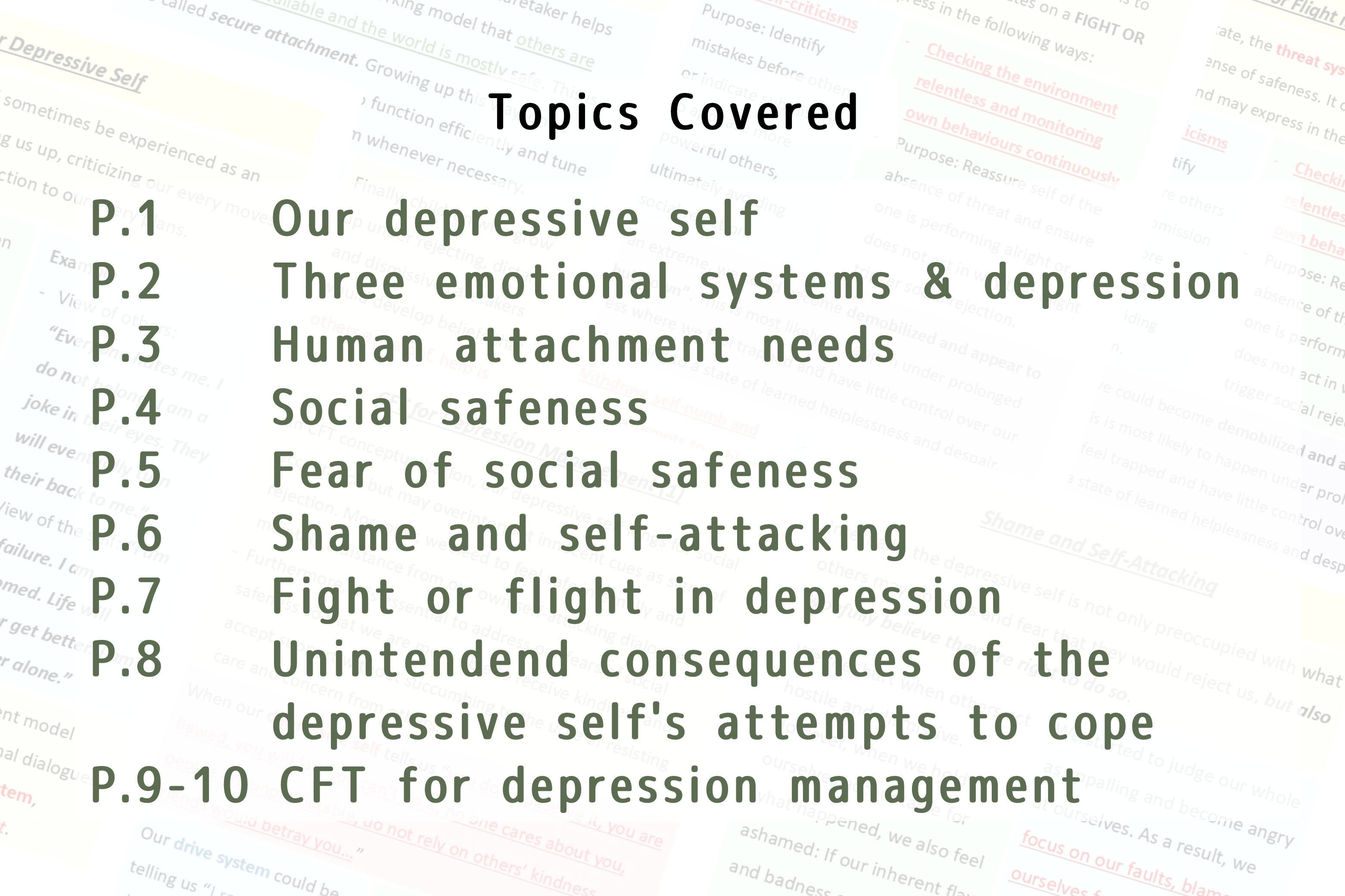 10 pages of psychoeducation information sheets explaining the theory underlying CFT approach for depression management.