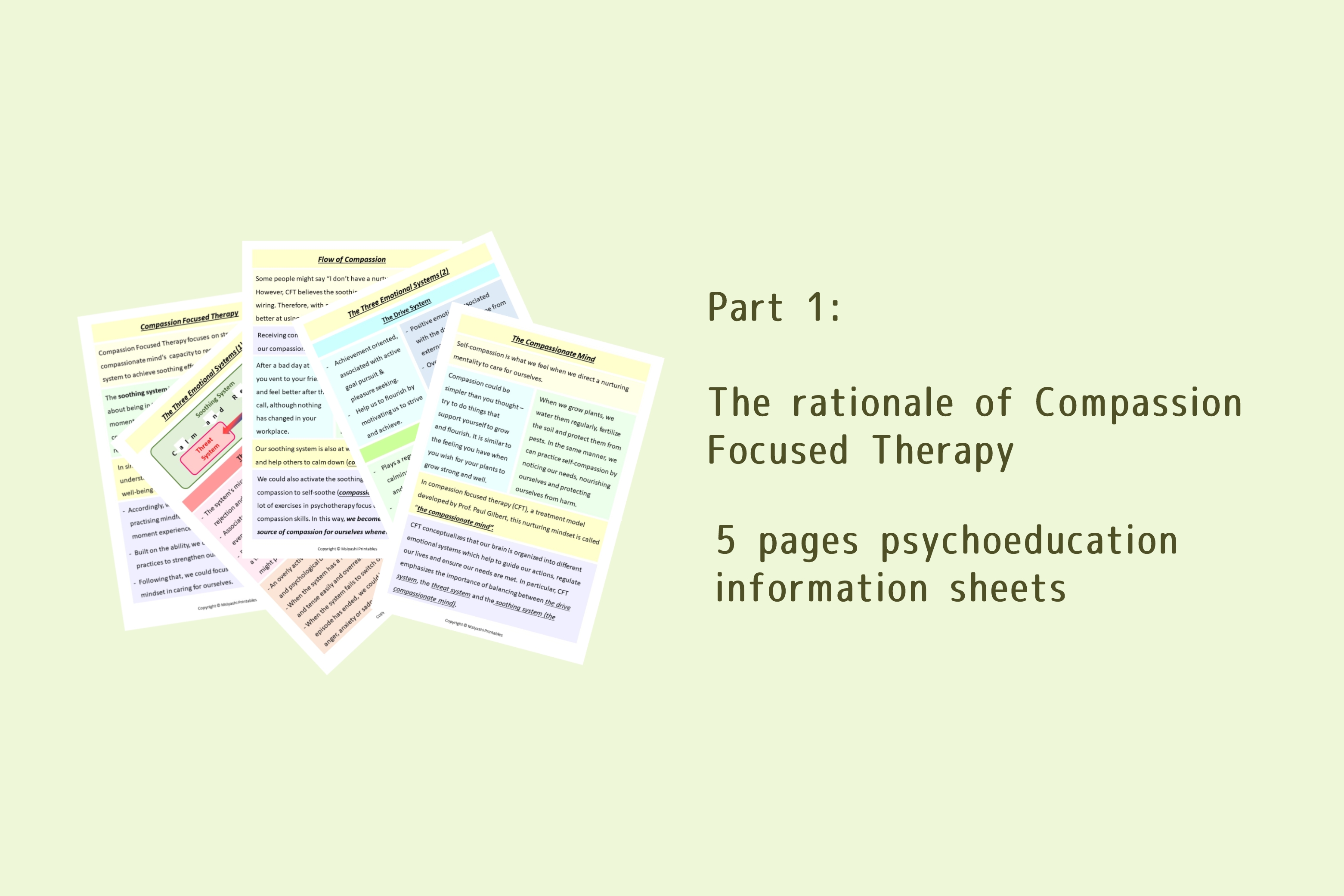 Five pages of psychoeducation information sheets explaining the CFT theoretical rationale.