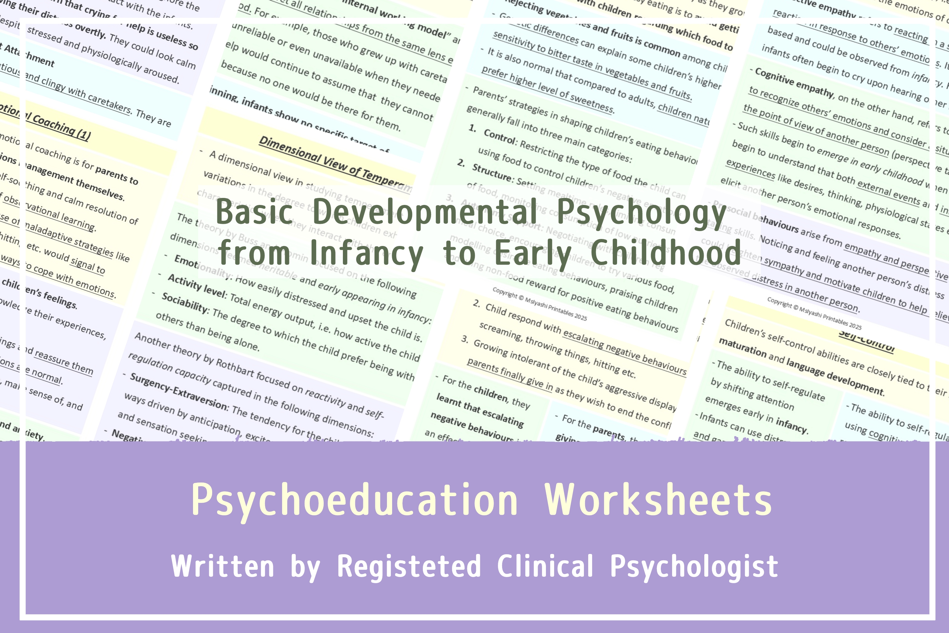 31 pages of psychoeducation information sheets covering basic developmental psychology for typically developing children.