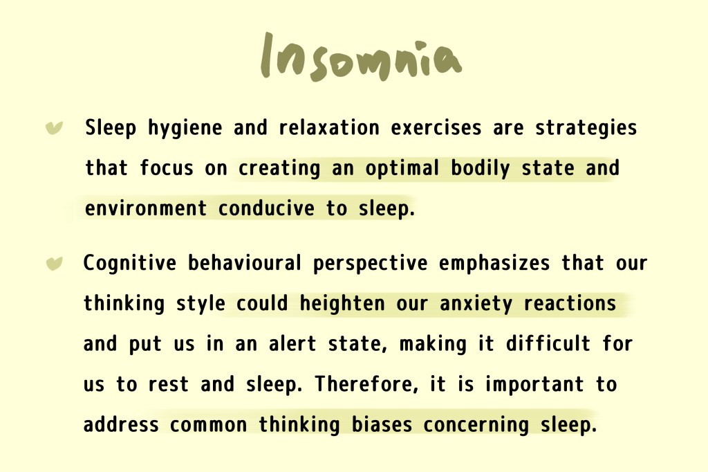 13 pages of psychoeducation information sheets written with reference to Cognitive Behavioral Therapy for Insomnia.