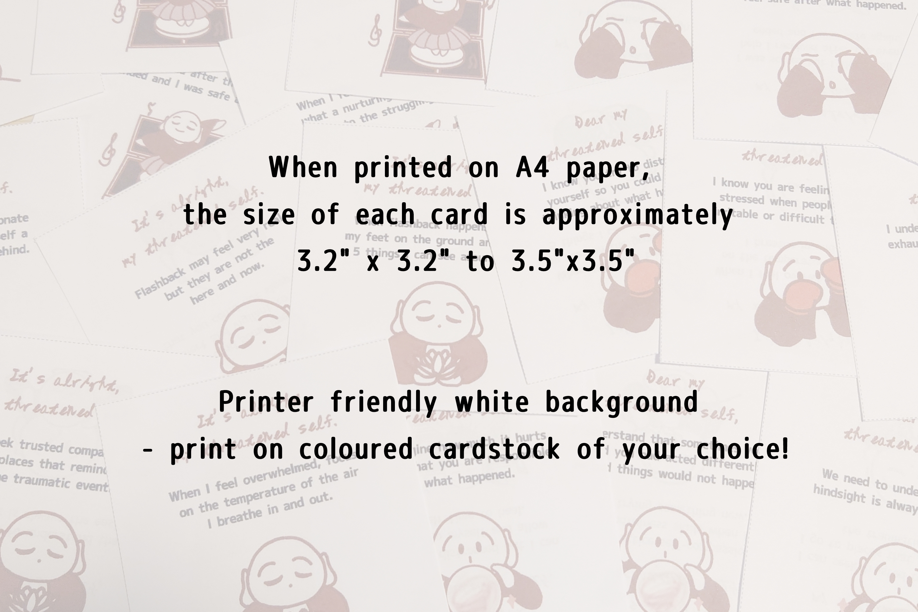 - These cards are designed to facilitate recovery from the aftermath of trauma in a more balanced mindset and self-compassionate attitude. They are written based on the rationale that while there is no quick fix to trauma, self-compassion could guide us through the healing journey.