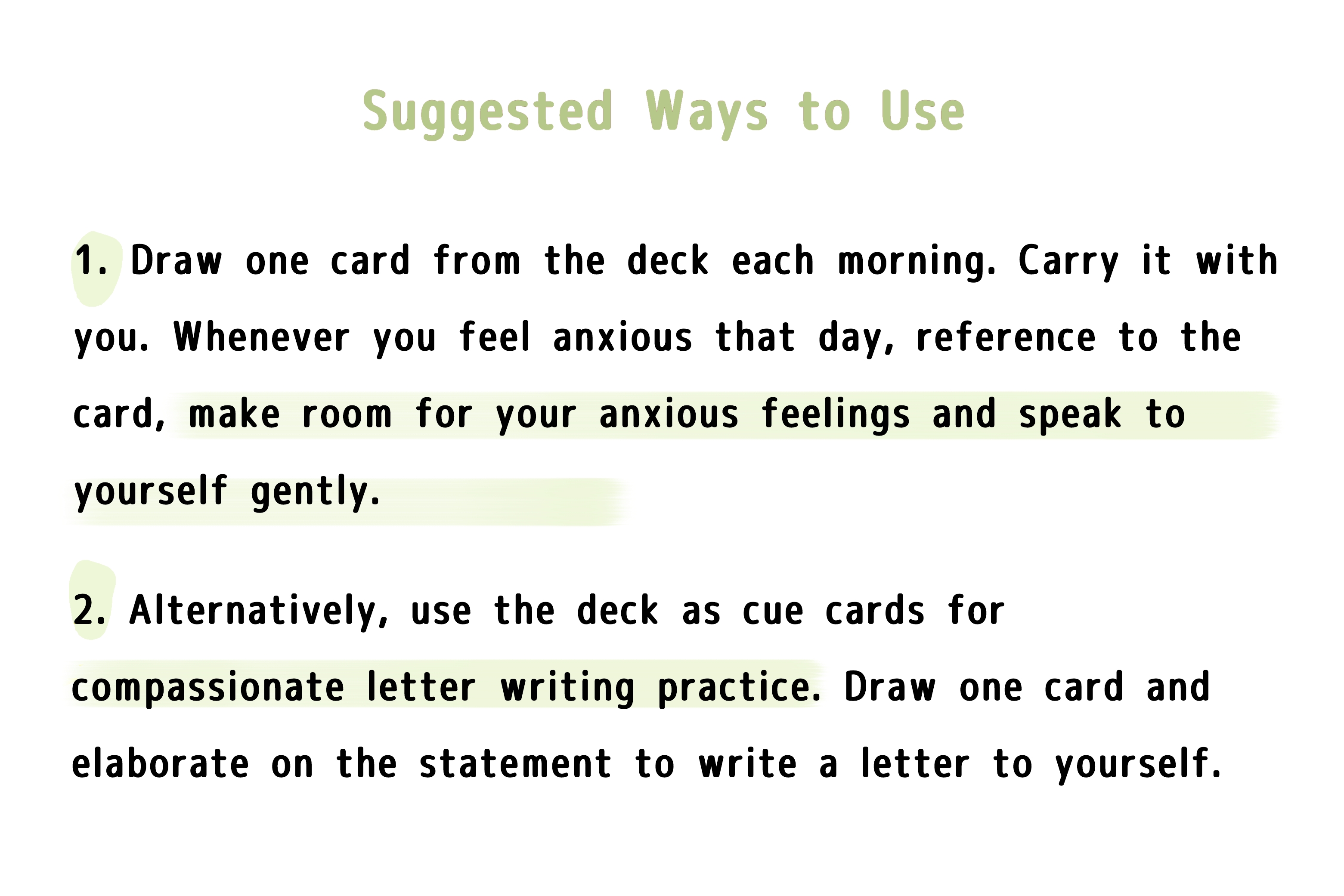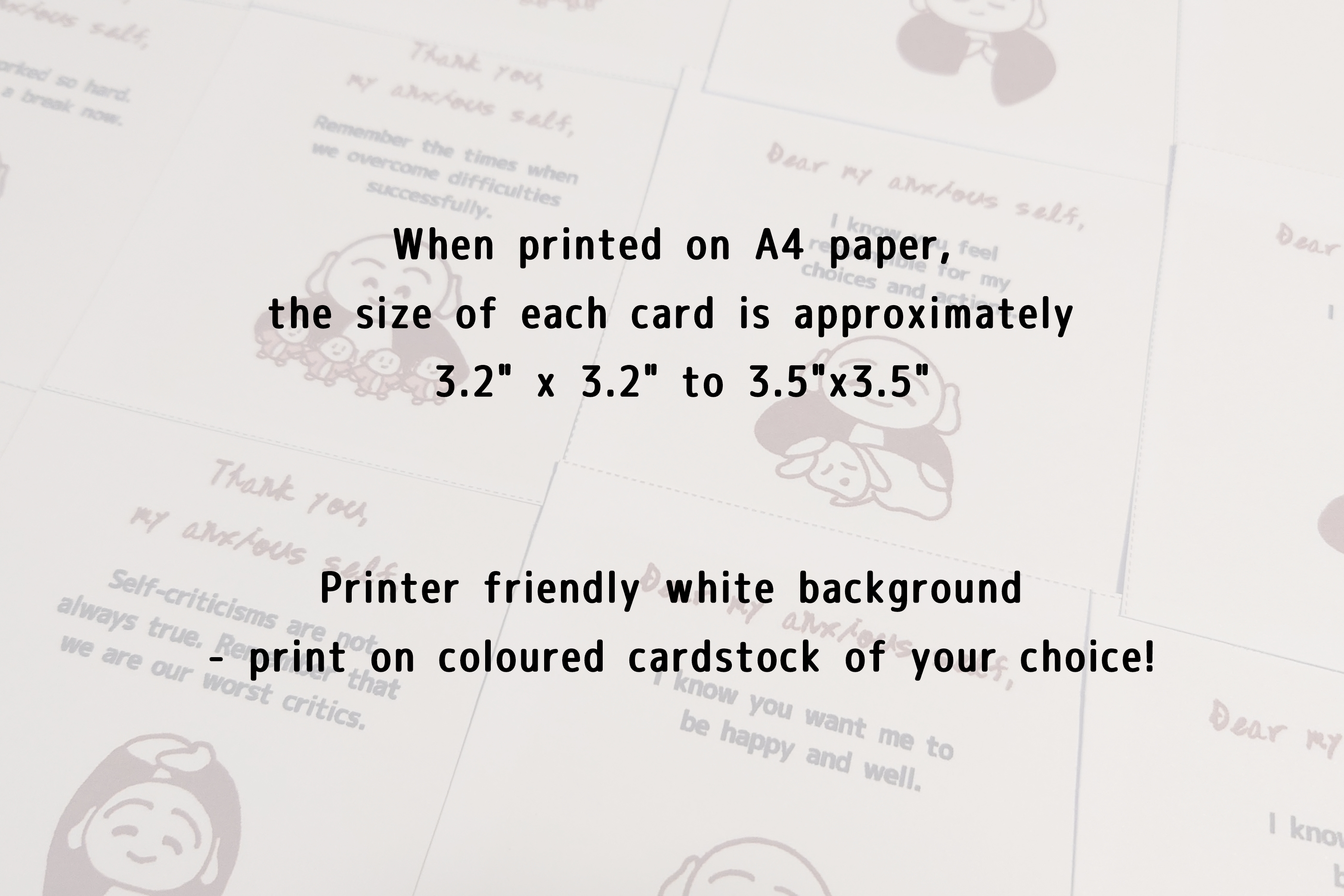 These coping cards are designed as a reminder to make room for your anxious feelings. Stop fighting with ourselves. Instead, listen to and acknowledge what our anxious selves are trying to tell us. Acceptance often helps to soothe negative emotions.