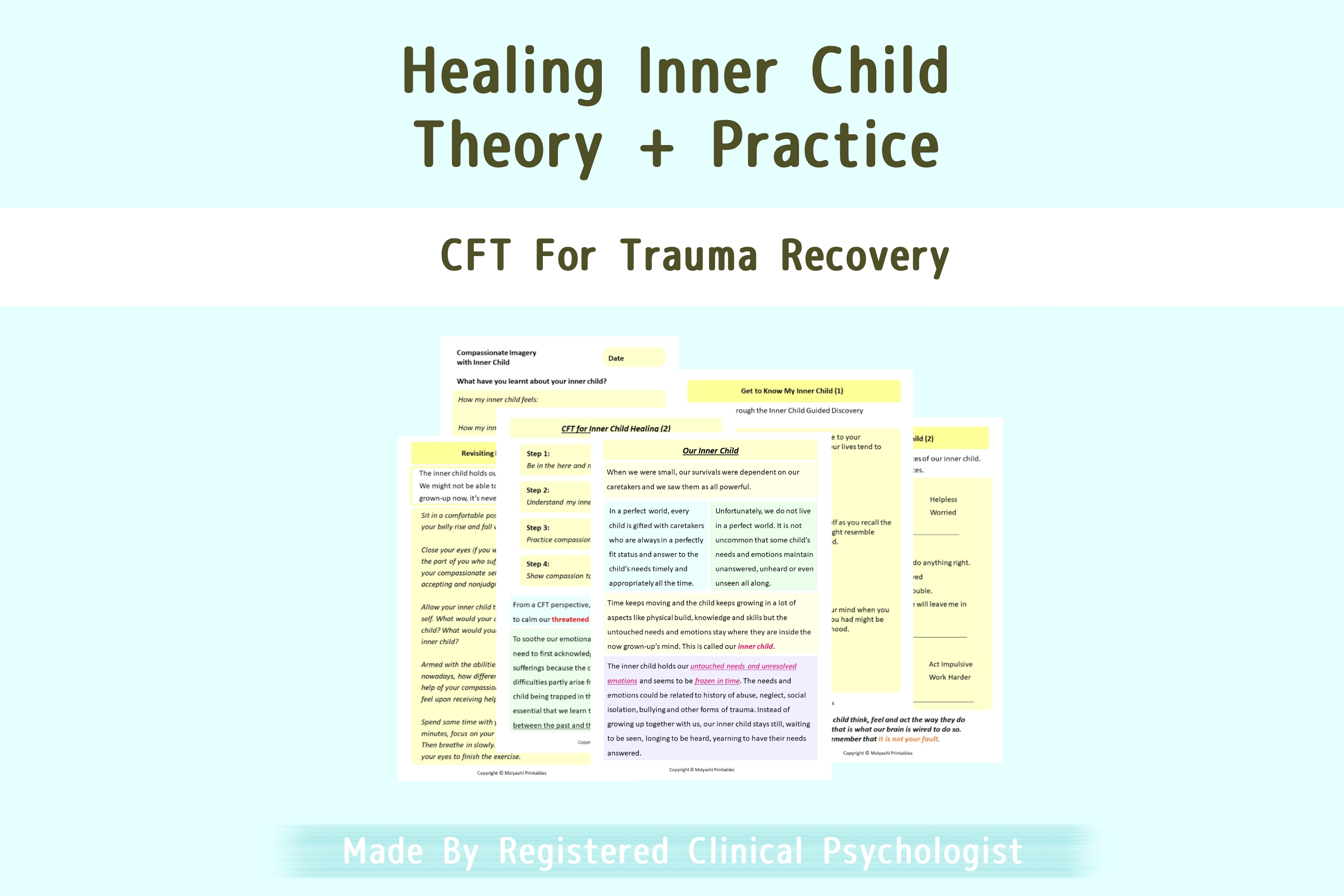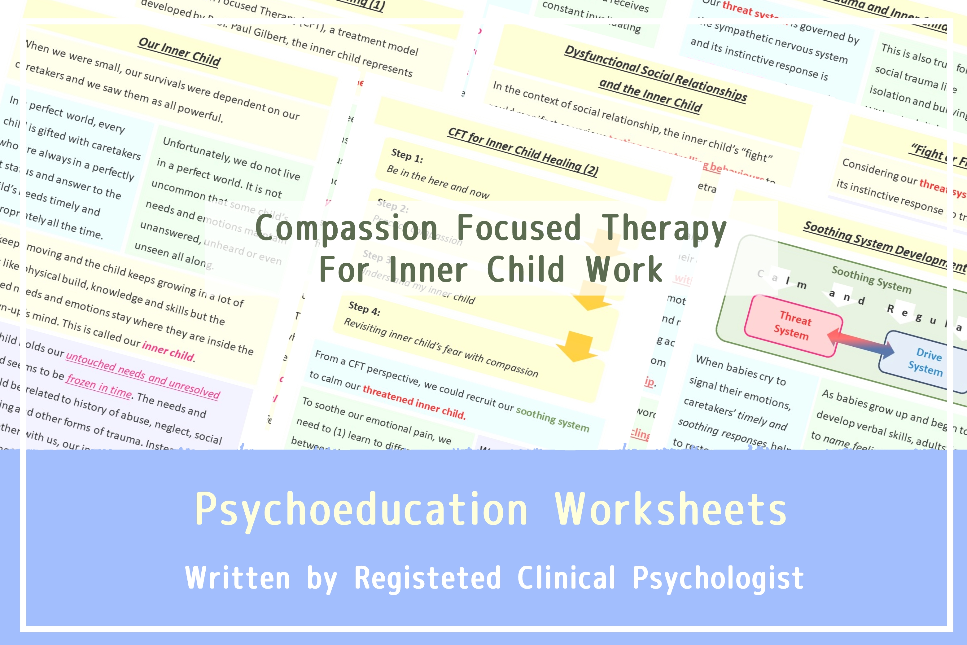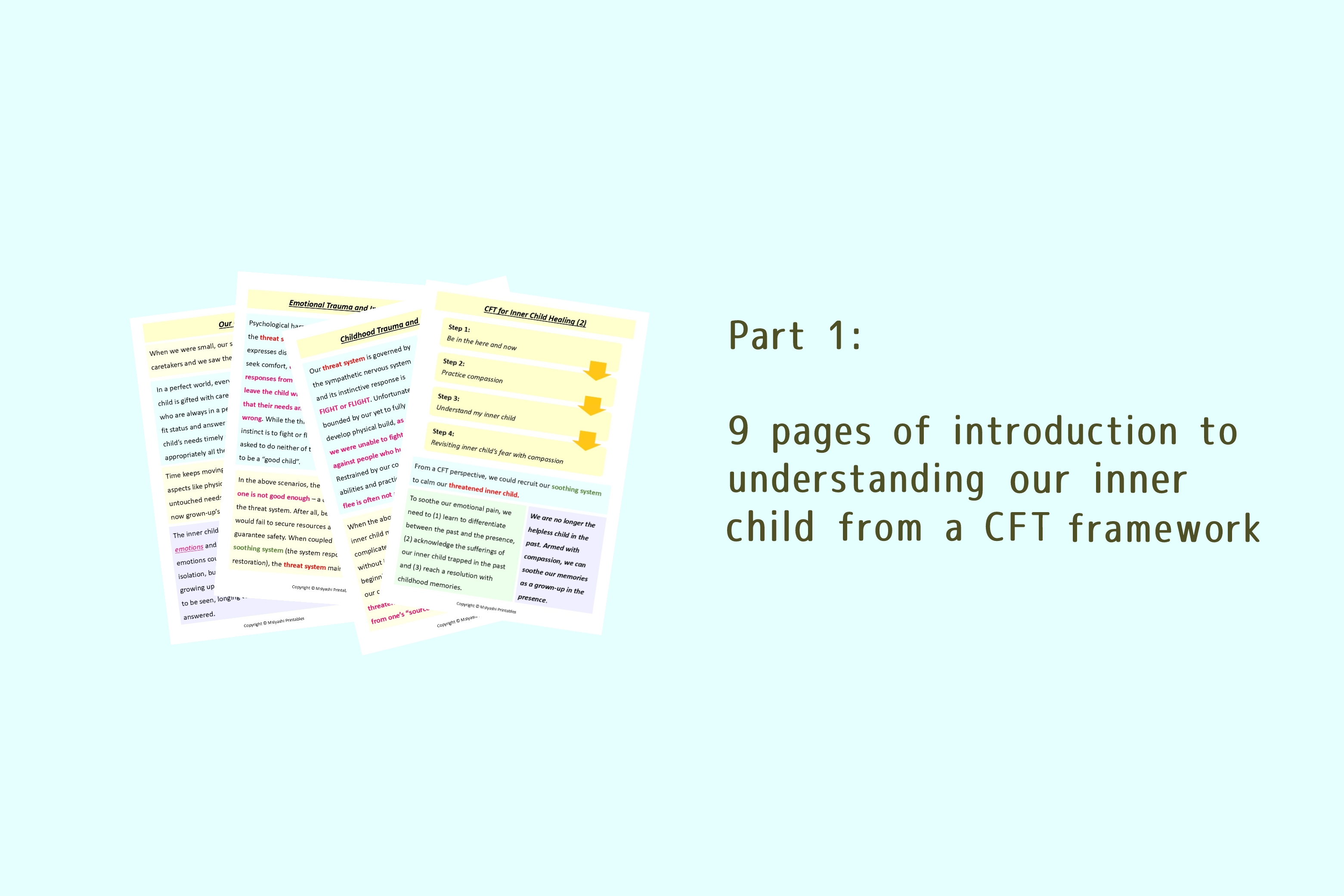 Nine pages of psychoeducation information sheets explaining the theory underlying CFT for healing our inner child.