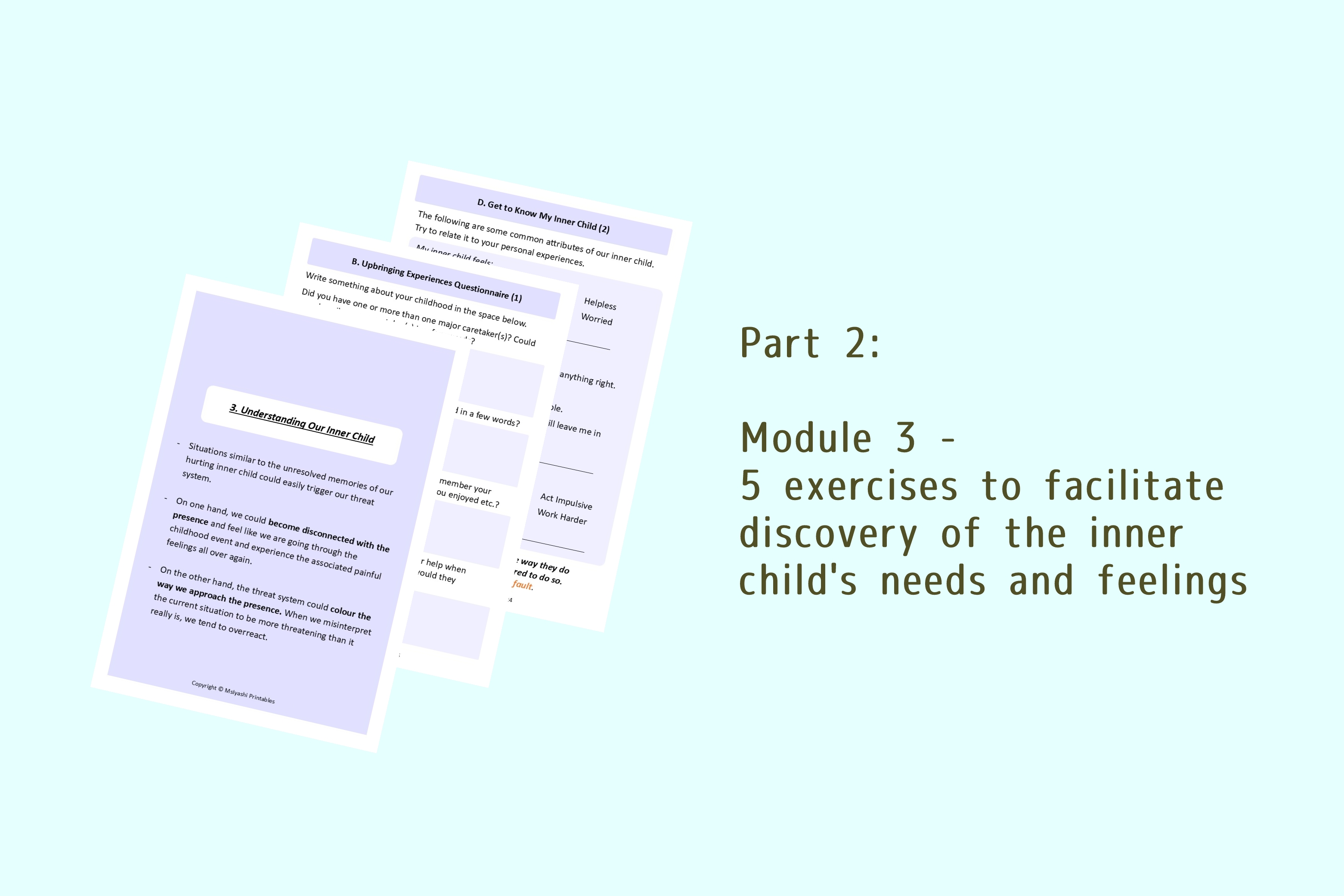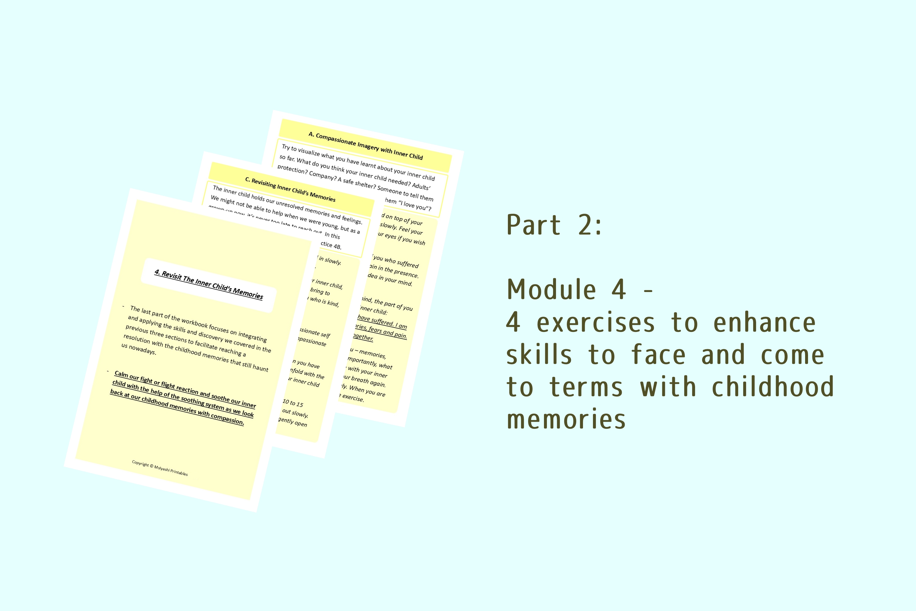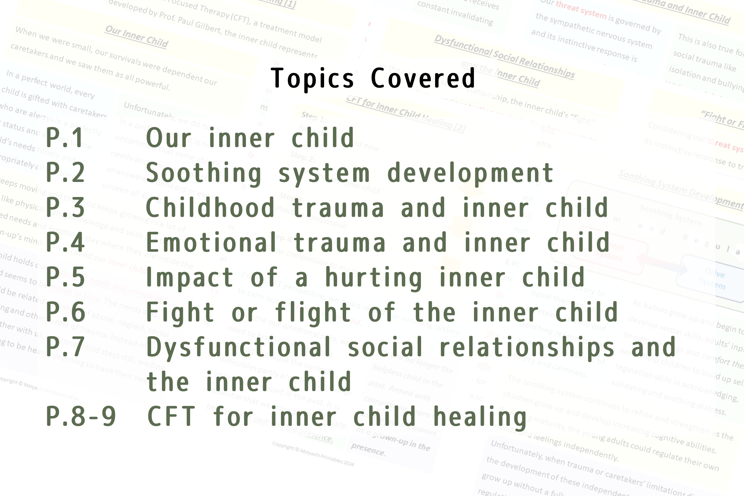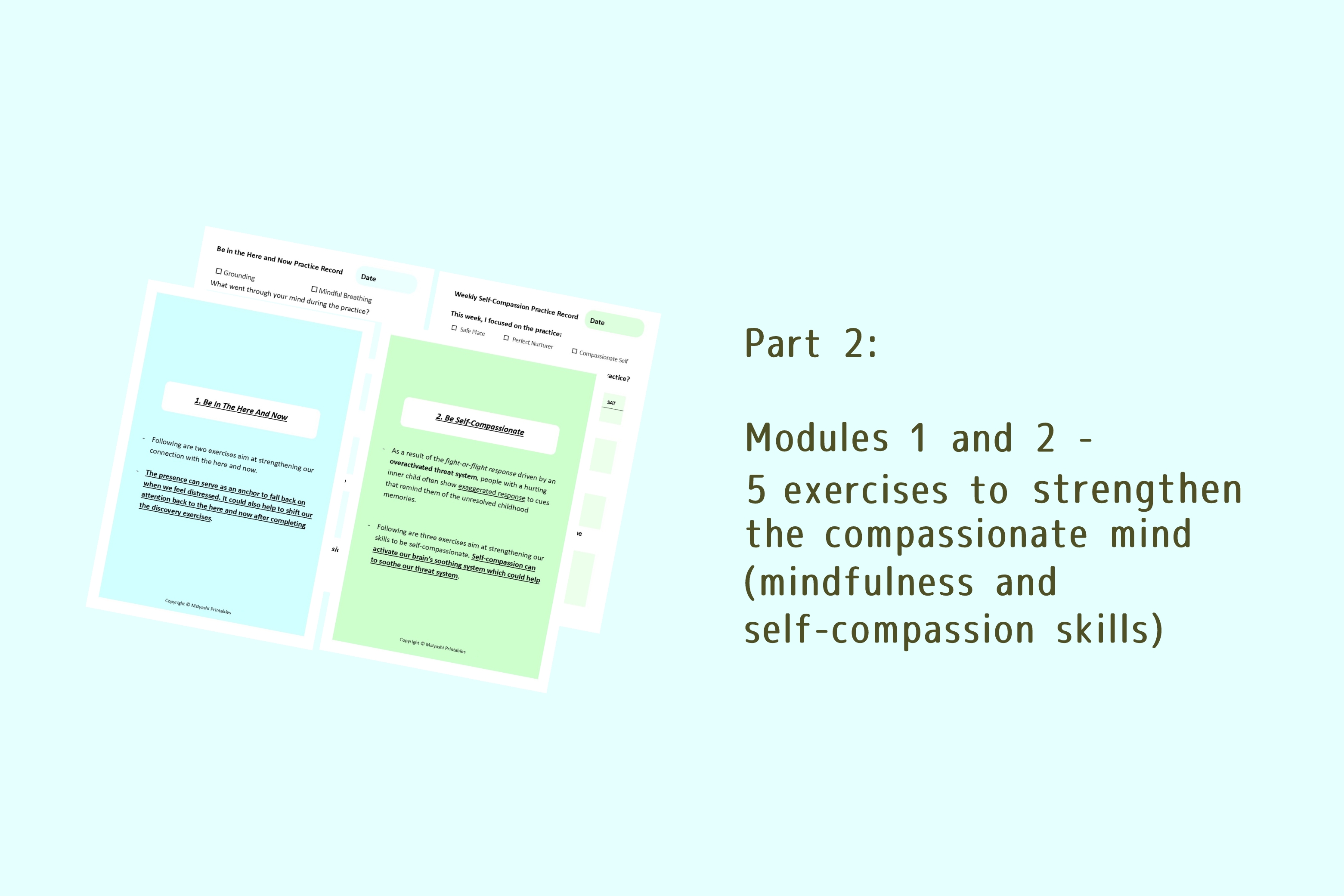 Nine pages of psychoeducation information sheets explaining the theory underlying CFT for healing our inner child.
