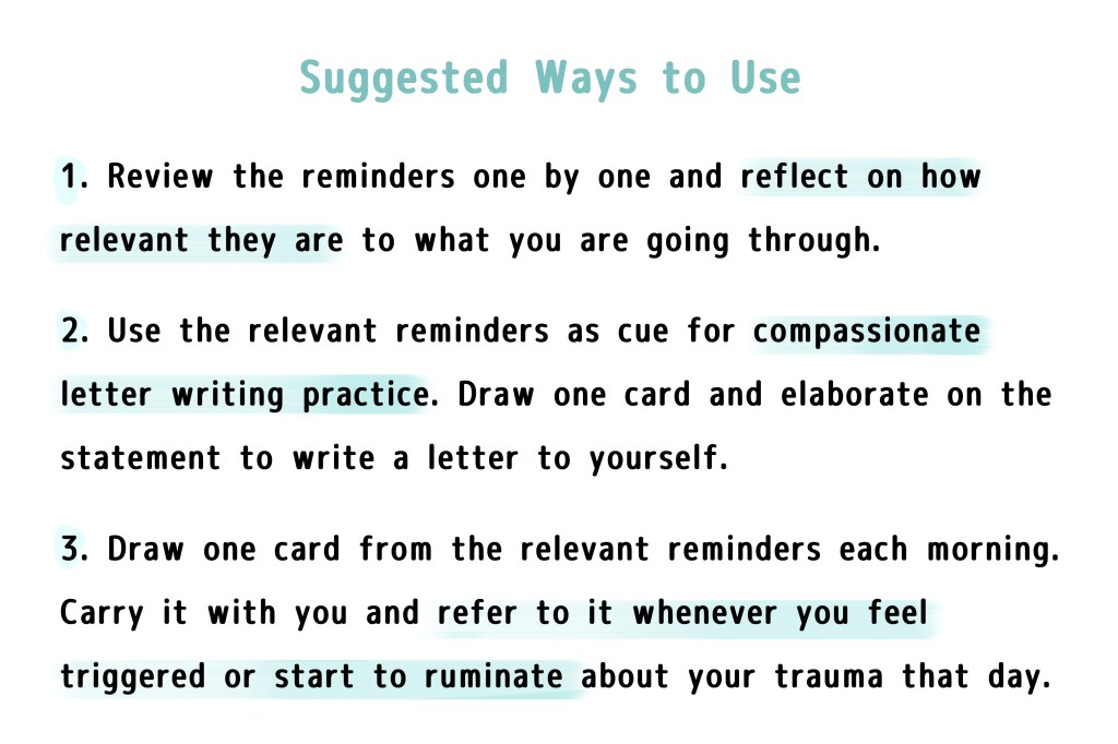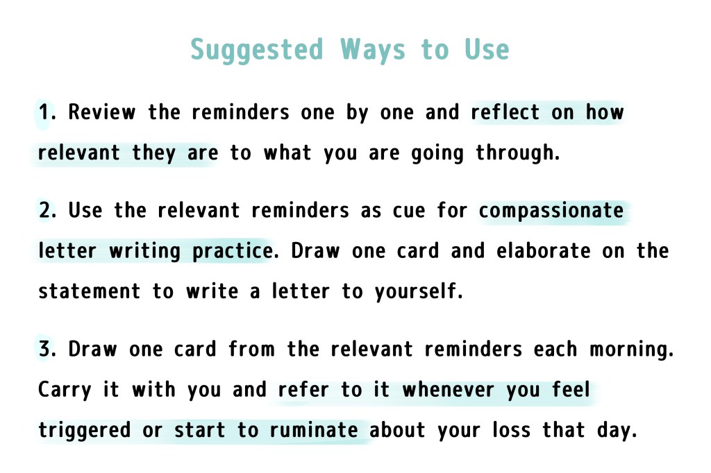 A set of 36 compassion focused reminders to facilitate healing from the trauma of miscarriage, completed with baby buddha illustrations.